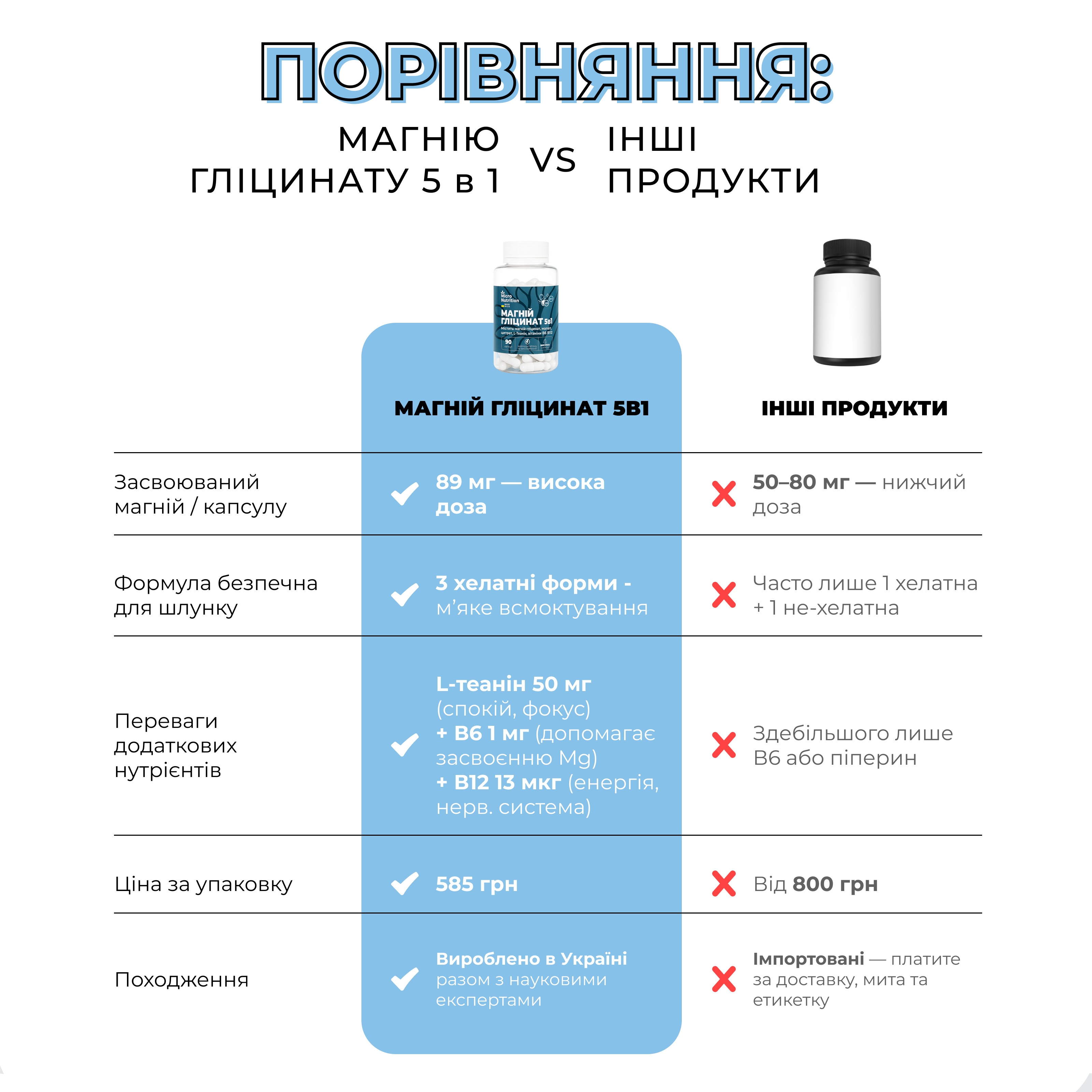 Магній Гліцинат 5в1 – комплекс трьох форм магнію (гліцинат, малат, цитрат), збагачений L-теаніном та вітамінами B6 і B12. Формула для підтримки нервової системи та загального самопочуття.